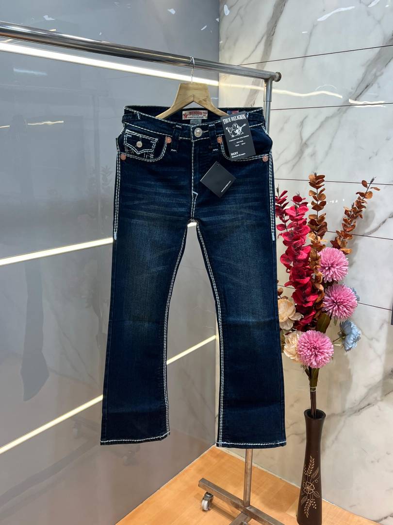 True Religio n Dark Shade Boot cut Premium Imported Stretchable lycra fabric Denim with back flap pocket Design Denim 3955